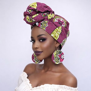 This head wrap is made of African Ankara fabric. Yellow, green and purple kente print is stunning and great for special or for everyday wear! There are many ways to wear and tie it so you’ll be able to achieve the perfect look for you. It can also be worn as a scarf, shawl, or sash.